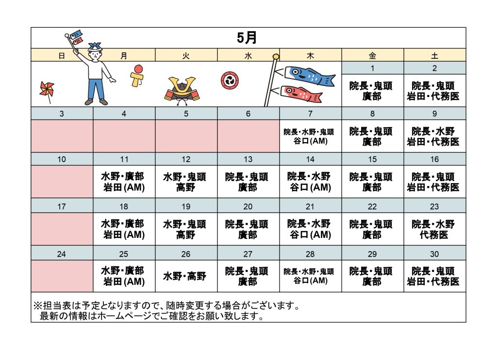 5月の担当医表となります。